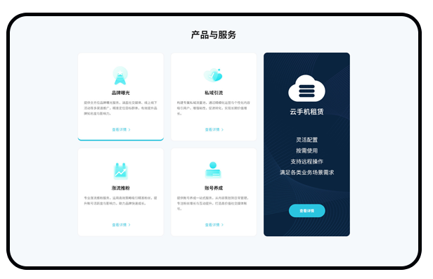 動(dòng)態(tài)細節加分: 首頁(yè)的微交互動(dòng)畫(huà)(如懸浮觸發(fā)的光效、數據流動(dòng)效果)讓頁(yè)面“活”起來(lái),避免B端網(wǎng)站的枯燥感。