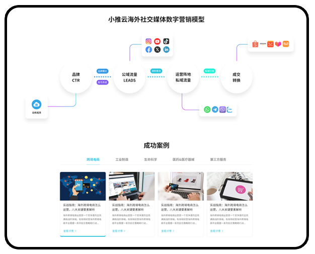 客戶(hù)案例故事化: 展示具體行業(yè)+痛點(diǎn)+解決方案,比單純放LOGO更有代入感。