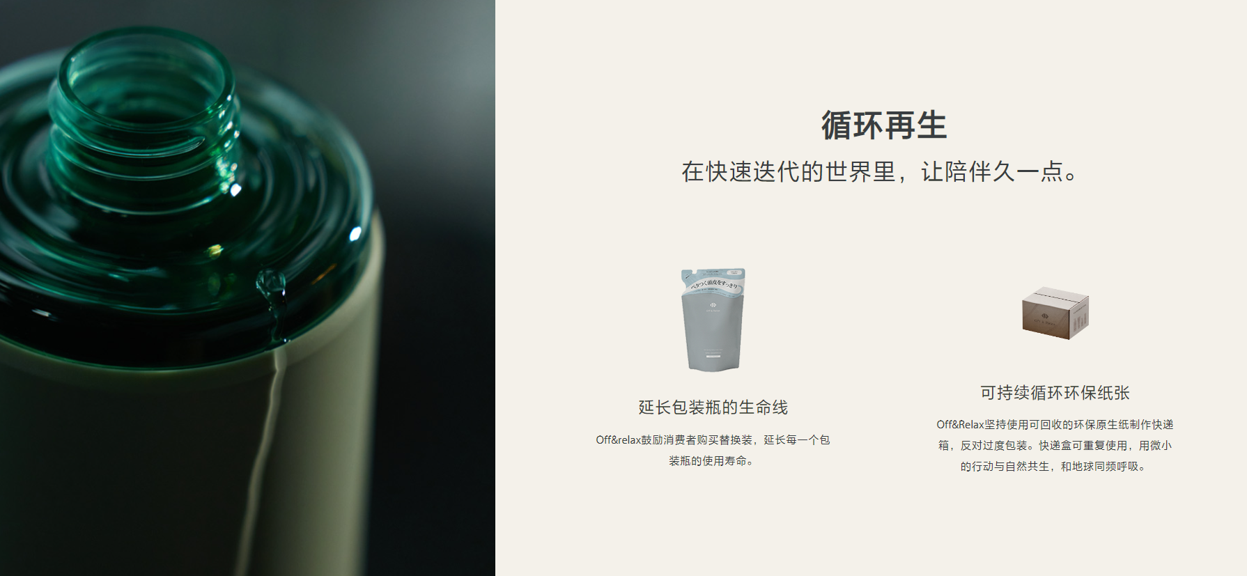 我們通過(guò)全屏大圖搭配簡(jiǎn)潔的文案,讓用戶(hù)在瀏覽網(wǎng)站時(shí),仿佛置身于一場(chǎng)舒緩的自然之旅。每一個(gè)畫(huà)面都在傳遞品牌想要表達的輕松、愉悅氛圍,讓用戶(hù)在潛移默化中感受到珀萊雅 Off & Relax 所倡導的身心放松與頭皮健康并重的生活方式。