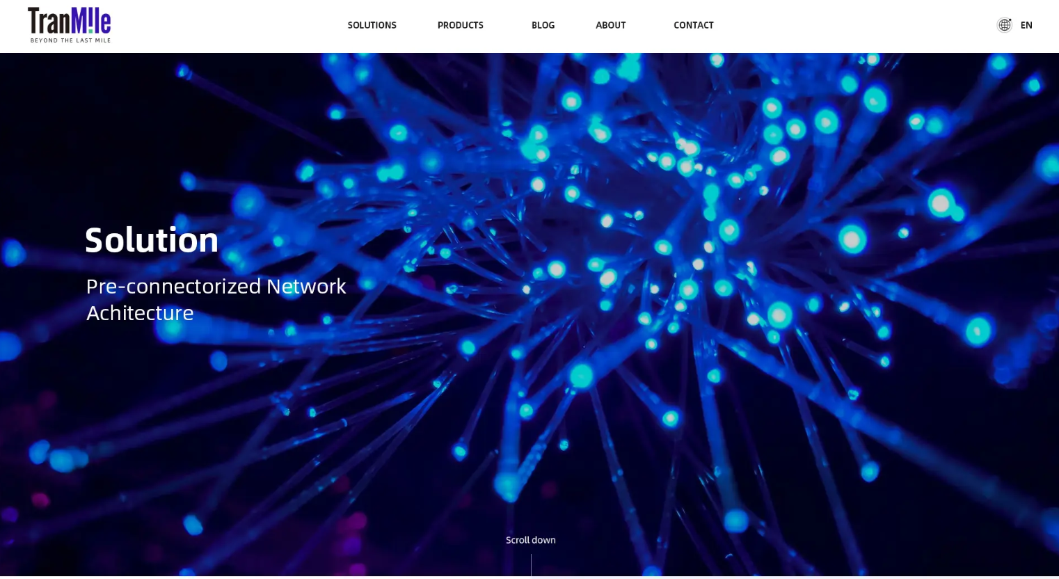 Banner區 采用科技感十足的光纖背景圖,并配有“Pre-connectorized Network Architecture”文案,突出產(chǎn)品技術(shù)屬性。