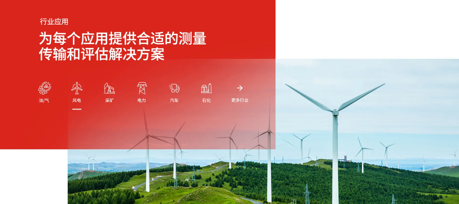 大幅工業(yè)機械臂圖片搭配 Slogan “Specific Needs, Specific Solution”,直接定位“行業(yè)定制測控”的解決核心;