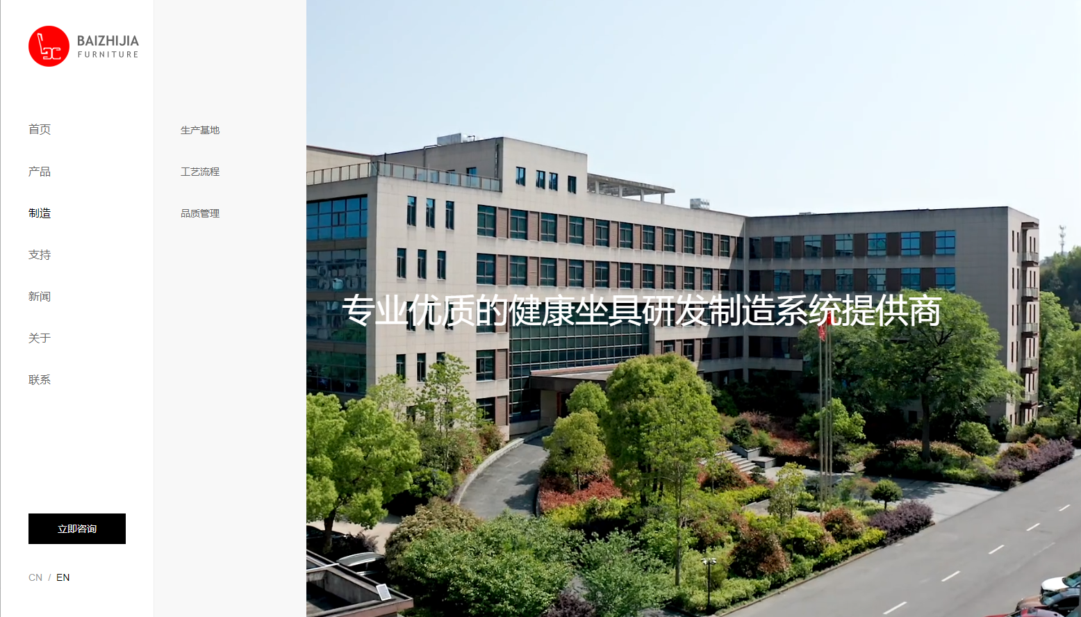 這是一個(gè)極簡(jiǎn)風(fēng)格的網(wǎng)站導航,采用的是左側主導航 + 右側簡(jiǎn)潔子導航的結構。頁(yè)面整體采用黑白配色,文字為主,沒(méi)有多余圖標或圖文混排。右側子項如“生產(chǎn)基地”“工藝流程”“質(zhì)量管理”等,與左側欄目形成簡(jiǎn)潔聯(lián)動(dòng)。