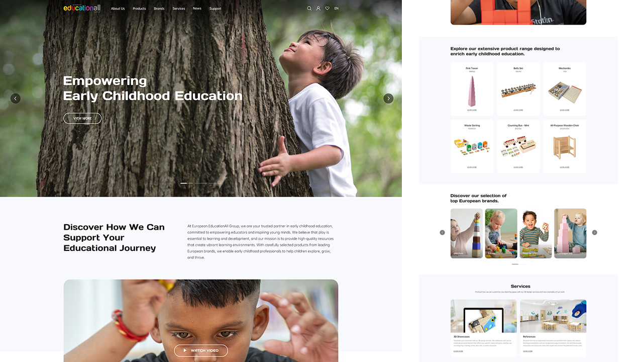 品牌頁(yè)采用簡(jiǎn)潔排版與溫柔影像,強化“歷史與傳承”的感覺(jué)。文字與圖像的結合,讓品牌不再是抽象的標識,而是一個(gè)有溫度、有記憶的教育伙伴。通過(guò)故事化表達,用戶(hù)感受到的不只是產(chǎn)品,而是一種可以信賴(lài)的價(jià)值觀(guān)。