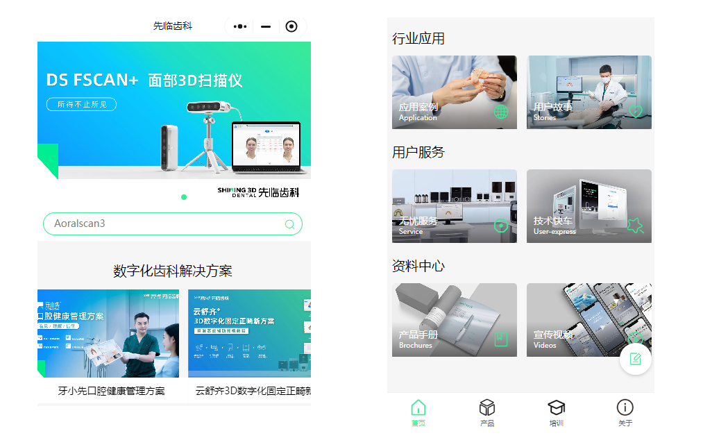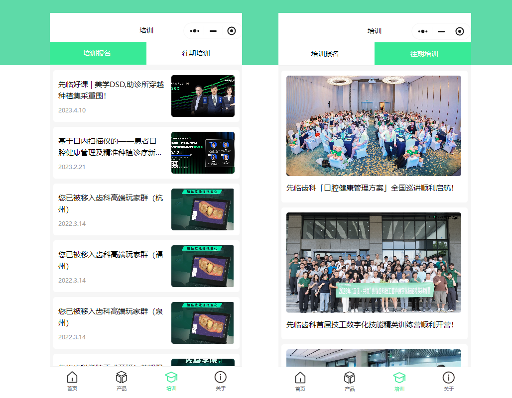 考慮到數字化齒科設備的專(zhuān)業(yè)性,小程序內設培訓板塊,幫助用戶(hù)學(xué)習相關(guān)知識: