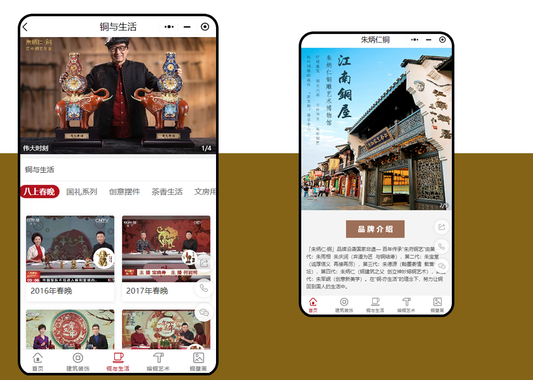 小程序內特別設置了品牌介紹模塊,詳細講述了「朱炳仁·銅」的五代傳承故事: