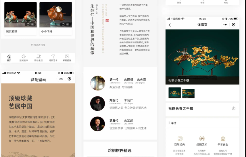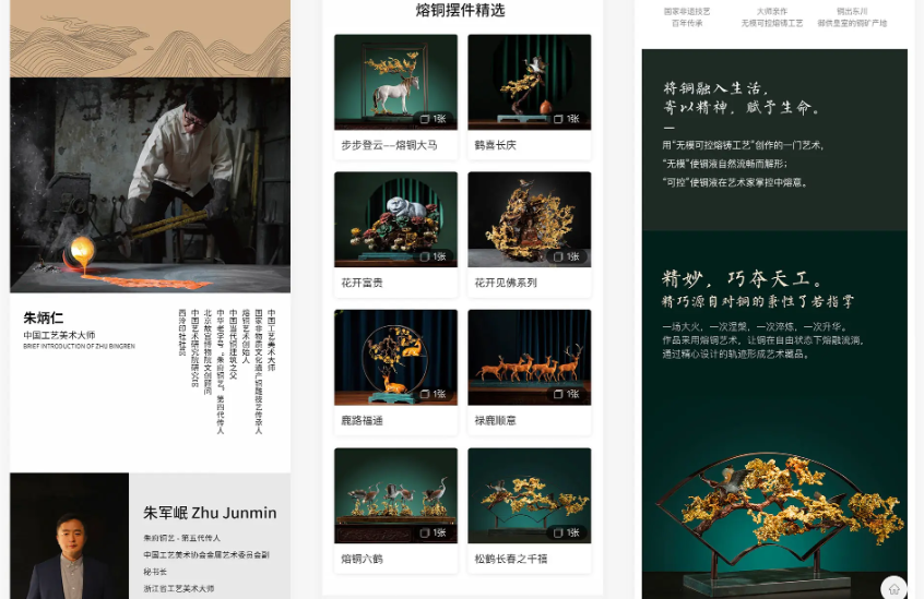 專(zhuān)門(mén)設立“熔銅藝術(shù)”欄目,講述朱手匠人、藝術(shù)起源、非遺技藝,強化品牌背書(shū)與文化高度。