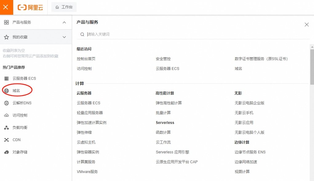 立刻預約1、登錄阿里云,點(diǎn)擊控制臺,點(diǎn)開(kāi)控制臺產(chǎn)品與服務(wù),點(diǎn)擊域名