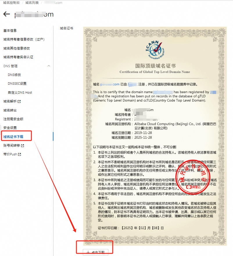 3、左側菜單欄,選擇域名證書(shū)下載,點(diǎn)擊下載即可