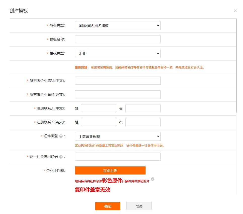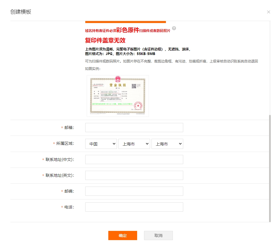 3、填寫(xiě)域名模板(過(guò)戶(hù)信息):
