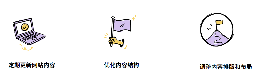 定期的內容更新和調整不僅能夠提升網(wǎng)站的吸引力,還能增強網(wǎng)站的SEO表現,有助于提升流量和用戶(hù)粘性。