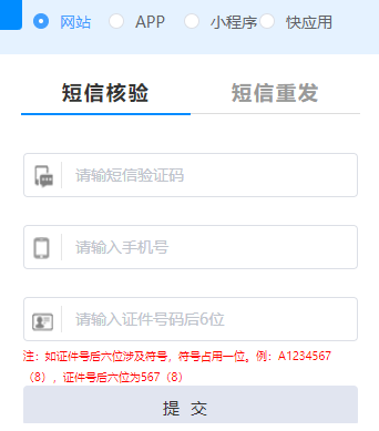 打開(kāi)鏈接,輸入身份證后4位、驗證碼、手機號等信息。