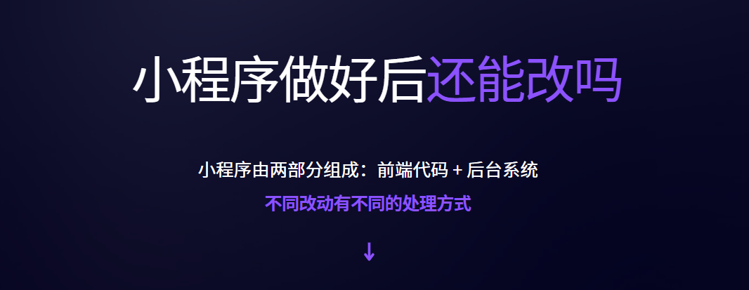 這個(gè)問(wèn)題問(wèn)得非常專(zhuān)業(yè)!因為小程序由兩部分組成:前端代碼 + 后臺系統,不同的改動(dòng)會(huì )有不同的處理方式。今天我們就一文講清楚:小程序改動(dòng)哪些需要重新發(fā)布,哪些不需要。