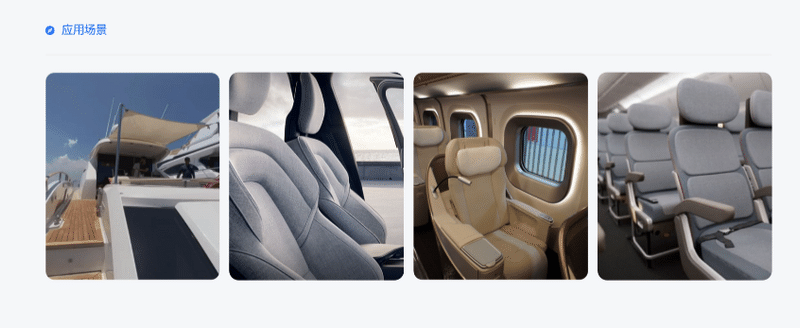 網(wǎng)站不以大篇幅堆砌文字,而是通過(guò)圖片、模塊、卡片式內容簡(jiǎn)化信息表達。在“應用場(chǎng)景”部分,通過(guò)游艇、轎車(chē)、高鐵、飛機等實(shí)際內飾環(huán)境的沉浸式視覺(jué)鋪陳,讓用戶(hù)感受到“已被采用”的實(shí)力背書(shū),潛移默化中增強了對品牌的信賴(lài)。