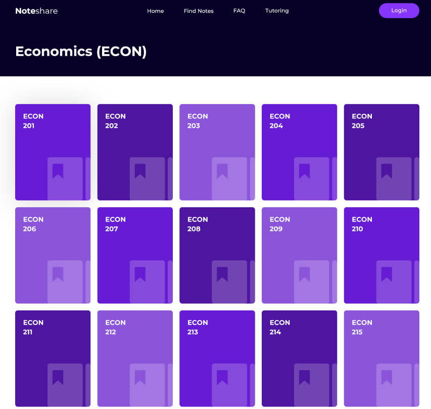 課程卡片式呈現:每門(mén)課程以獨立模塊展示,標題醒目,如 ECON 201、ECON 202 等,方便快速掃讀。