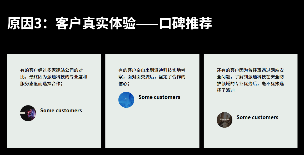 有的客戶(hù)經(jīng)過(guò)多家建站公司的對比,最終因為派迪科技的專(zhuān)業(yè)度和服務(wù)態(tài)度而選擇合作;