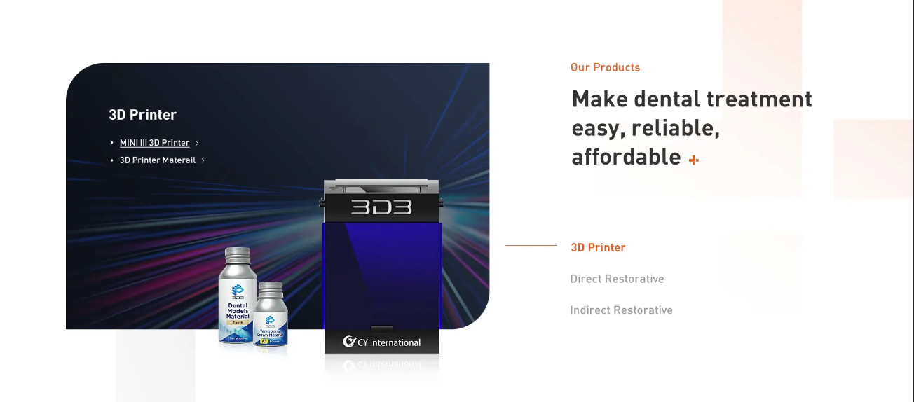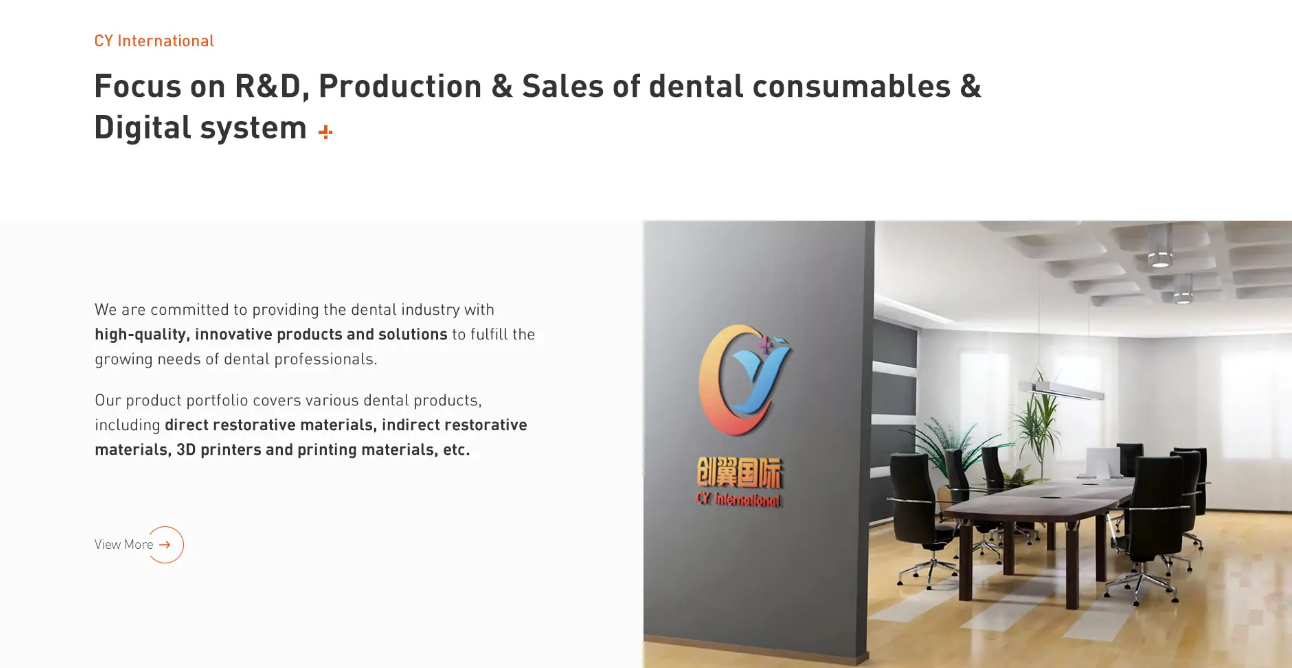 雖然頁(yè)面展示為英文為主,但整體語(yǔ)句簡(jiǎn)潔明了、專(zhuān)業(yè)術(shù)語(yǔ)表達準確,例如“Direct Restorative Materials”與“Digital Dental System”這樣的表述,既符合行業(yè)標準又方便國外用戶(hù)快速理解。