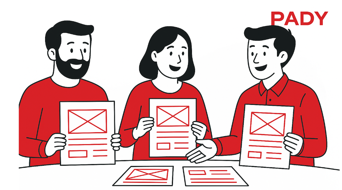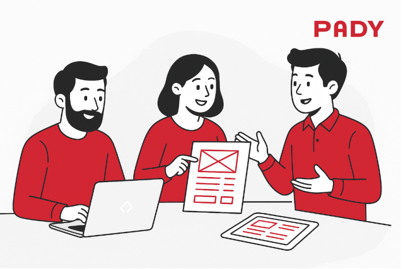 就在派迪科技會(huì )議室里,一個(gè)網(wǎng)站首頁(yè)草圖成了桌上的“主角”。三位主創(chuàng )人員圍坐一圈,一人手持筆記本,一人拿著(zhù)畫(huà)得滿(mǎn)是線(xiàn)框的紙張,一人正在激動(dòng)地揮舞手勢,試圖說(shuō)服對方按鈕應該放在哪一側。