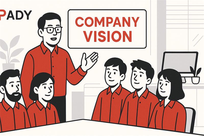 在派迪科技的會(huì )議室里,一場(chǎng)主題為“COMPANY VISION”的內部分享會(huì )正在進(jìn)行。圖中,一位領(lǐng)導者正向團隊成員講述公司的發(fā)展愿景,六位員工認真聆聽(tīng),神情專(zhuān)注。這不僅是一場(chǎng)普通的會(huì )議,更是一場(chǎng)激發(fā)集體使命感與團隊凝聚力的價(jià)值宣言。