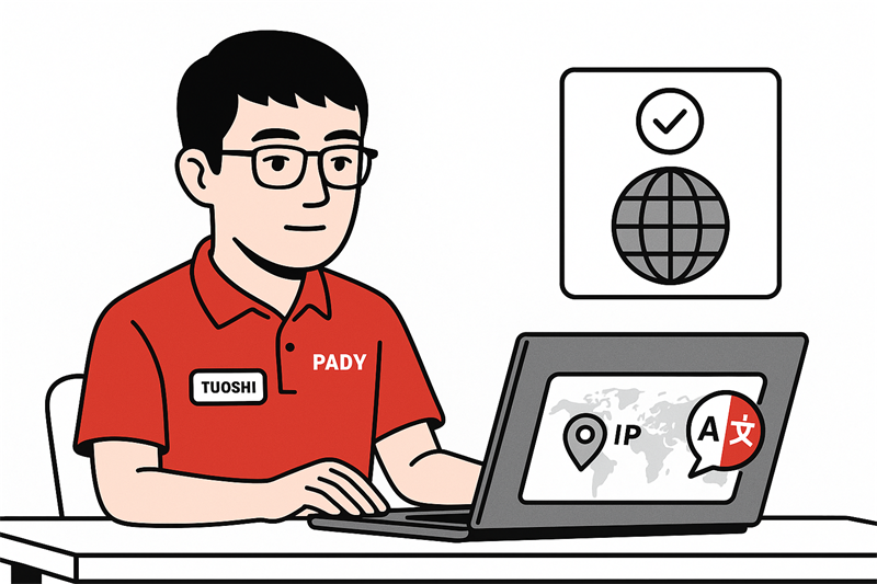立刻預約圖中這個(gè)人,叫作 TUOSHI,是派迪科技的一名后端工程師。公司內部的人都知道,只要項目涉及“多語(yǔ)言”“IP識別”“國際訪(fǎng)問(wèn)優(yōu)化”這些關(guān)鍵詞,找他準沒(méi)錯。