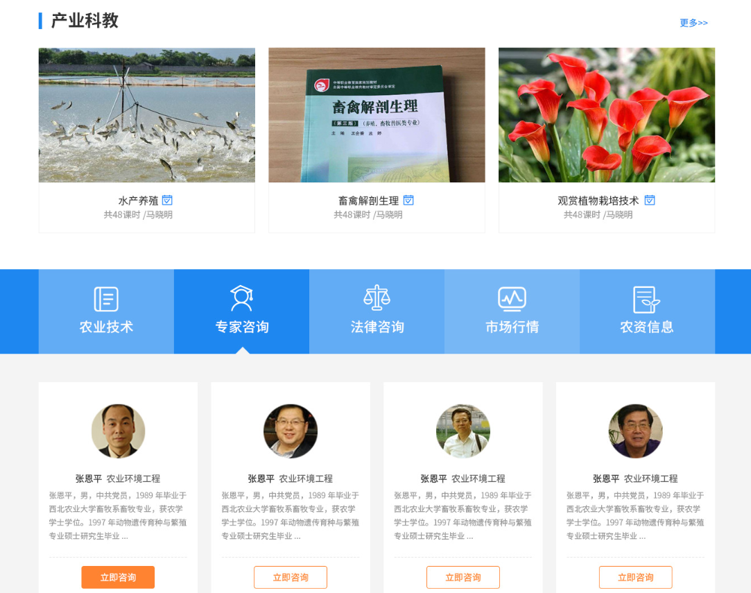 專(zhuān)家咨詢(xún):通過(guò)線(xiàn)上專(zhuān)家介紹與預約入口,讓農業(yè)知識不再被時(shí)間與空間限制。