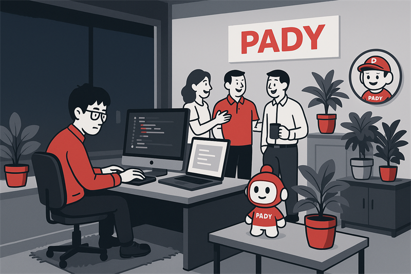 那天晚上,他一個(gè)人留在辦公室,桌上是一杯早就放涼的熱水,身邊是印著(zhù)“PADY”的小玩偶,窗外是拱墅區安靜如水的夜。